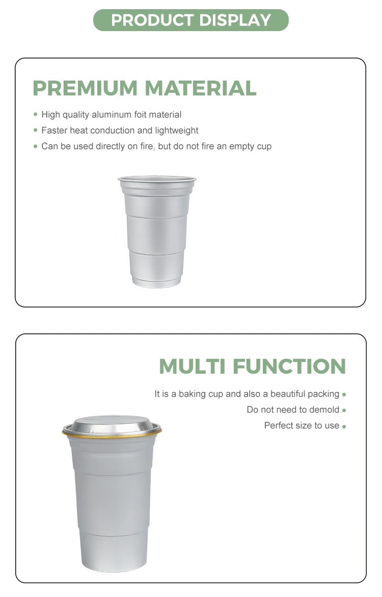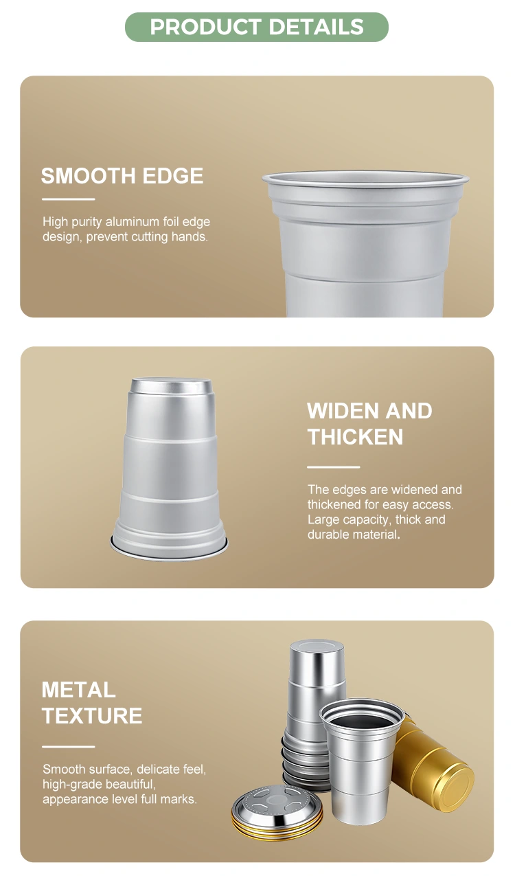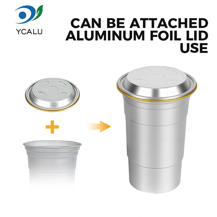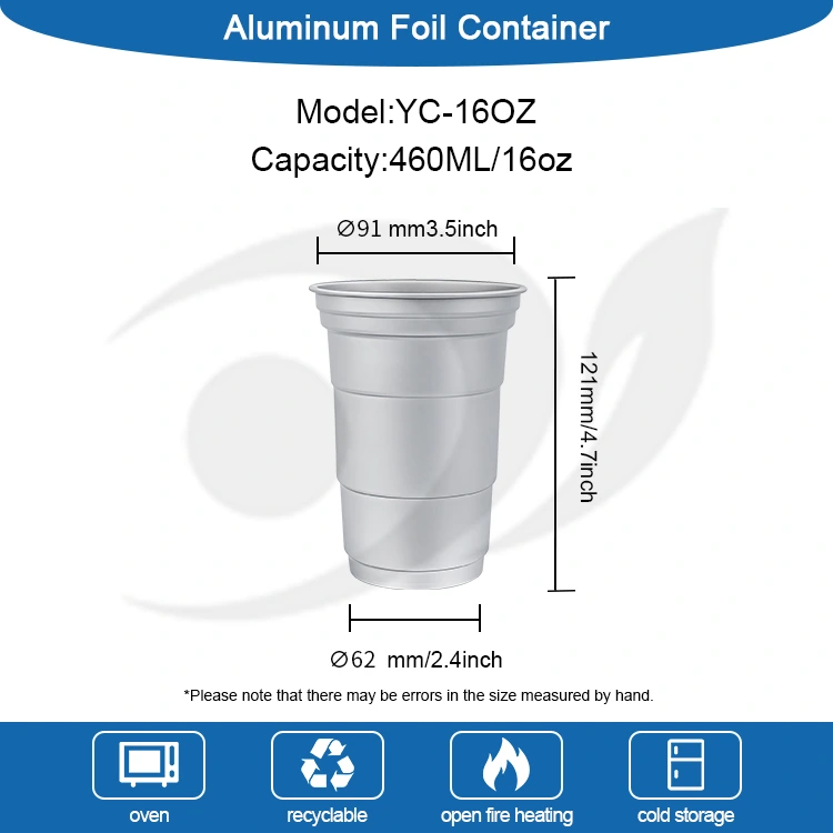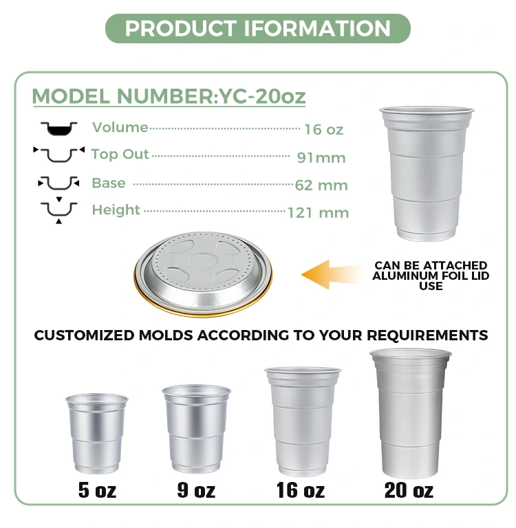 Yunchu on Hiina juhtiv 16 untsi ühekordselt kasutatavate alumiiniumfooliumist joogitopside tootja. See 16 untsi ühekordselt kasutatav kohandatud alumiiniumfooliumist joogitops on 460-milliliitrine alumiiniumfooliumist tass, mis sobib tavaliste jookide, nagu kohv ja õlu, jaoks. Sellel on standardne disain ja see on suunatud peamiselt kommertskasutajatele, nagu kohvikud ja käsitööbaarid, kellel on sageli kohandamisvajadusi. See 16 untsi ühekordselt kasutatav kohandatud ringlussevõetav alumiiniumfooliumist joogitops, mis pakub tõhusat soojusjuhtivust ja põhilist tihendusjõudlust, paneb suuremat rõhku ka kiiretele ja paindlikele brändi visuaalsetele kohandamisteenustele.