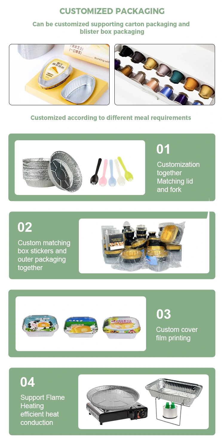 Päringute jaoks sileda seina alumiiniumfooliumi konteinerid, hõbedase alumiiniumfooliumi konteinerid, jätke oma e -posti aadress lahkelt meiega ja võtame teiega ühendust 24 tunni jooksul.