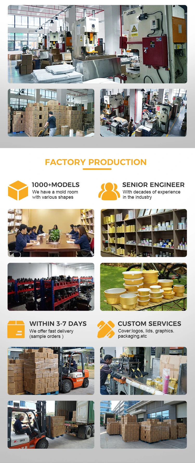 Päringute jaoks sileda seina alumiiniumfooliumi konteinerid, hõbedase alumiiniumfooliumi konteinerid, jätke oma e -posti aadress lahkelt meiega ja võtame teiega ühendust 24 tunni jooksul.