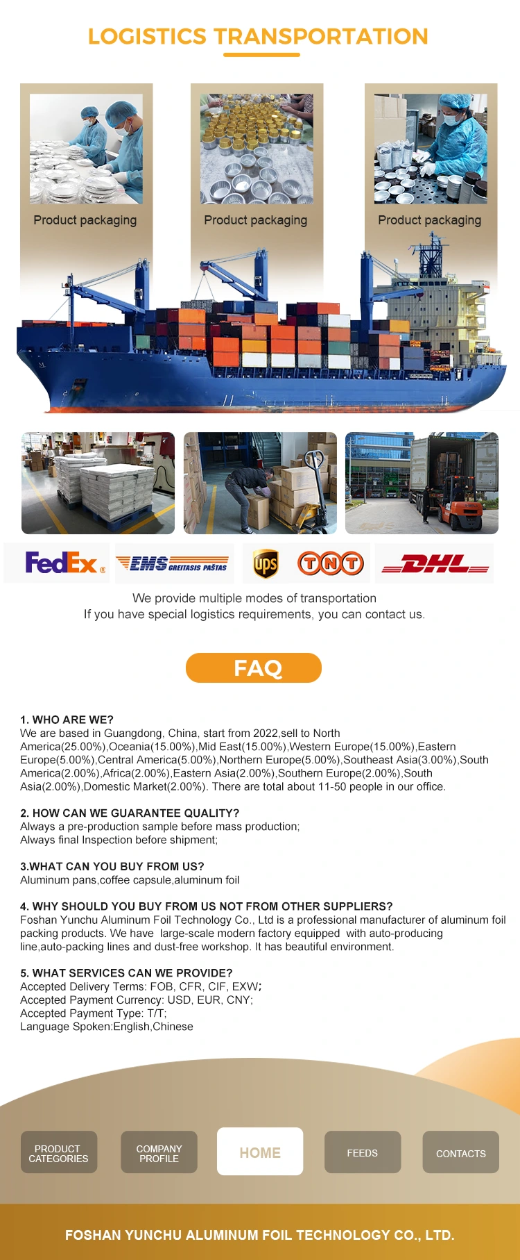 Toitlustus- ja jaemüügistsenaariumid: väikeste jookide ja proovide hoidmiseks saab kasutada kohvikuid, piimateepoode ja mahlapoode. Suurepärane mahutavus ja metalliline läige täiustavad kaubamärgi tekstuuri; jäätisepoode ja magustoidupoode saab kasutada mini-desserditopsidena jäätisepallide, väikeste portsjonite vahu jms kandmiseks. Alumiiniummaterjal suudab paremini hoida madalat temperatuuri ja pikendada maitse säilivusaega. Yunchu alumiiniumfooliumi professionaalsed tootmisvõimalused võivad toetada brändi LOGO-de kohandamist tassi korpusel, aidates kaupmeestel tugevdada kaubamärgi tuntust.
