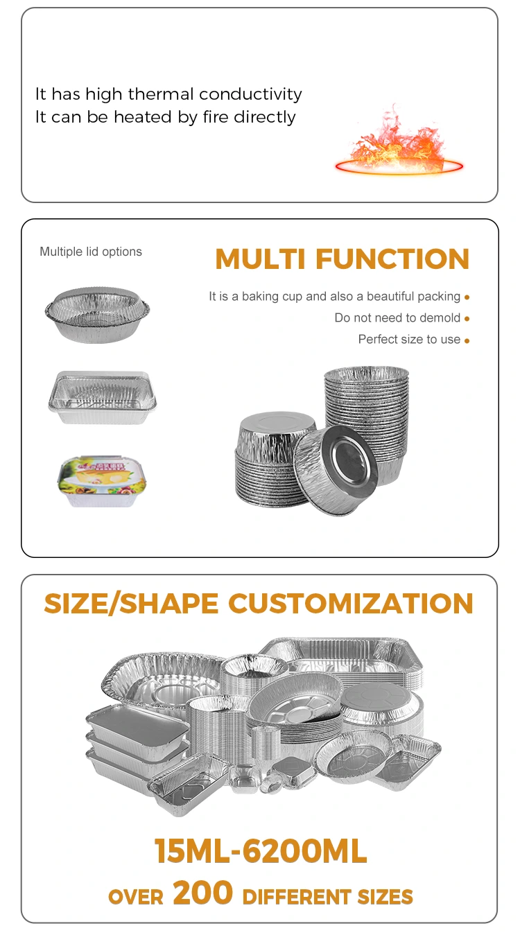 Yunchu alumiiniumfooliumi tarnija koogi küpsetustass hõbedane alumiiniumfooliumitoidu anum küpsetamine ja kahes-ühes kasutatava, mitmeotstarbelise alumiiniumfooliumi anuma kujundamine, küpsetamine, laiaulatuslik kasutamine, võib kuumutada avatud leegi ja resistentse küpsetamise, pottide asemel. tuleb olla volditud ja vormitud, väljamõeldud kasutamine, üks hallituse mitmeotstarbeline, puding, kook, munakoogid, aurutatud munad, grillid jne., Viljavastane ja hõlpsasti lammutatav, hõlpsasti põletatav, sileda siseruumi sisemine seest saab vabastada kerge näputäis, avatud leegi kuumutamiskindla ja mitte purunemise korral, mis võib vältida väikeseid s-i sorteerimist ja šokolaate.