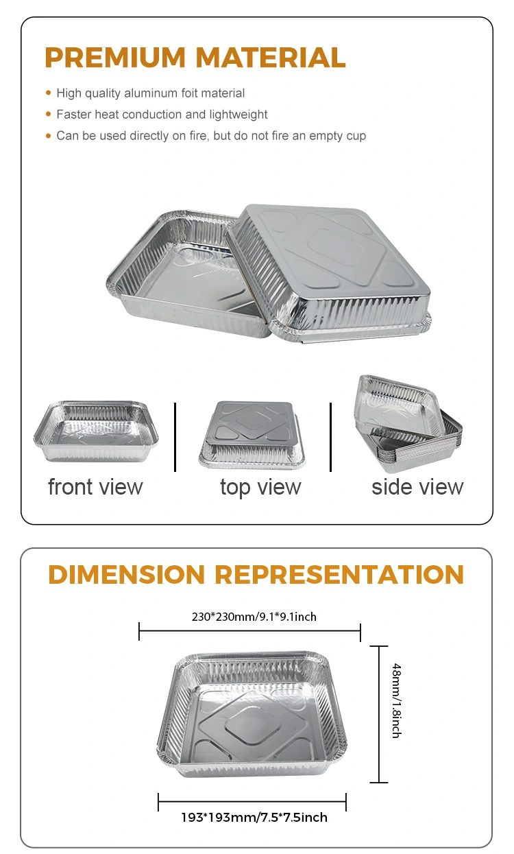 Yunchu alumiiniumfooliumi tarnija toodab ühekordselt kasutatavaid BBQ -varre hõbedase alumiiniumfooliumi konteinereid, mis sobivad toitlustusalaseks tellimusteks, väikeste kookide pagarites, peresuupistetes ja restoranides. Ohutud ja tervislikud toiduideed ei ole piiratud, köögiriistad on hea partner, et toitu hõlpsalt süüa teha, õhk-praepannid ja muud seadmed on kuumakindlad ja õlikindlad, hõlpsasti küpsetatavad, väligrillid, ajutised kaussid ei karda tulekahju, kui kasutamine on vajalik, et toite või suppi on vajalik, ilma et see oleks kuiv, ilma et see oleks ilma paisutatud, ilma et see on ilma veeta, kodumajapidamiseta, kodumajapidamise ja mugava taldrikuta, puhta ja mugava taldrikuta, puhastada, puhastada ja mugav taldrik, mis on tehtud ja see on tehtud. Käte kriimustamise vältimiseks on läbimõeldud servakujundus. Erinevate kasutusstsenaariumide jaoks on teile valimiseks saadaval mitu suurust. Kui teil on küsimusi või vajate lisateavet, võtke meiega ühendust.