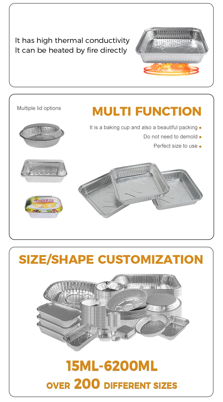 Päringute jaoks sileda seina alumiiniumfooliumi konteinerid, hõbedase alumiiniumfooliumi konteinerid, jätke oma e -posti aadress lahkelt meiega ja võtame teiega ühendust 24 tunni jooksul.