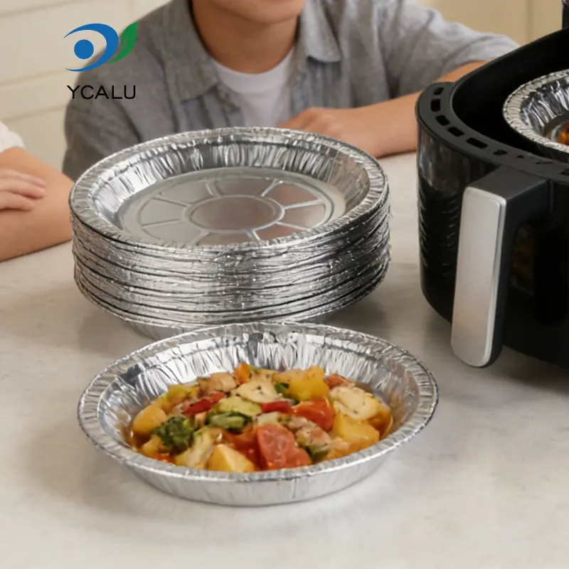 Yunchu alumiiniumfooliumist ühekordselt kasutatav ketasõhkfritüür Hõbedane alumiiniumfooliumist konteiner Toidukvaliteediga kõrge puhtusastmega alumiiniumfooliumil ei ole lisandeid ega lõhna ning see vastab riiklikele toiduga kokkupuutuvate materjalide standarditele. See võib olla otseses kokkupuutes toore ja keedetud koostisosadega – olgu selleks siis marineeritud grillroog, värskendavad röstitud köögiviljad või pehmed, kleepuvad ja magusad röstitud magustoidud. Kahjulike ainete imbumise tõenäosus puudub. Hõbedane läikiv alumiiniumfoolium on suurepärase soojusjuhtivusega. Ühes tükis ketaskonstruktsioon sobib enamiku õhufritüüride suurustega. Saadaval 6-, 7- ja 8-tollises suuruses, sobib väikeste portsjonite jaoks ja jagamiseks kogu perega. Korduvaid reguleerimisi pole vaja. Seda saab hõlpsasti panna praekorvi, mis võimaldab materjali eeliseid täielikult ära kasutada.