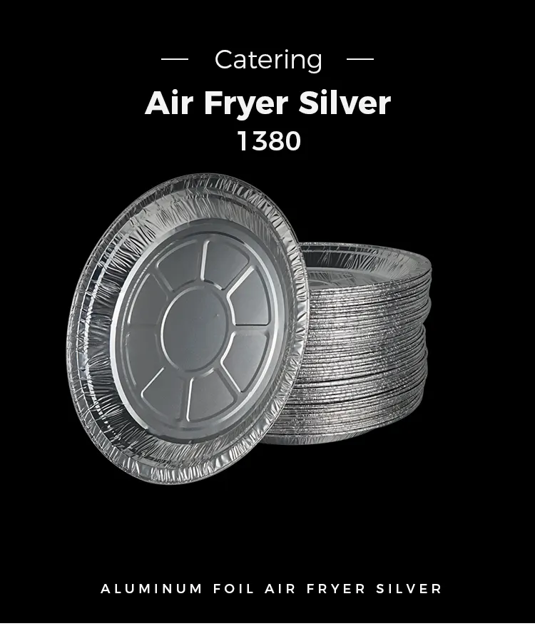 • Ühekordsed ketas-õhufritüürid Hõbedased alumiiniumfooliumist toidunõudÜhekordsed ketas-õhufritüürid Hõbedased alumiiniumfooliumist toidunõud