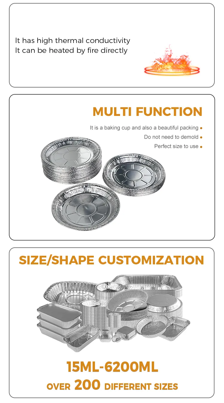 Päringute jaoks sileda seina alumiiniumfooliumi konteinerid, hõbedase alumiiniumfooliumi konteinerid, jätke oma e -posti aadress lahkelt meiega ja võtame teiega ühendust 24 tunni jooksul.