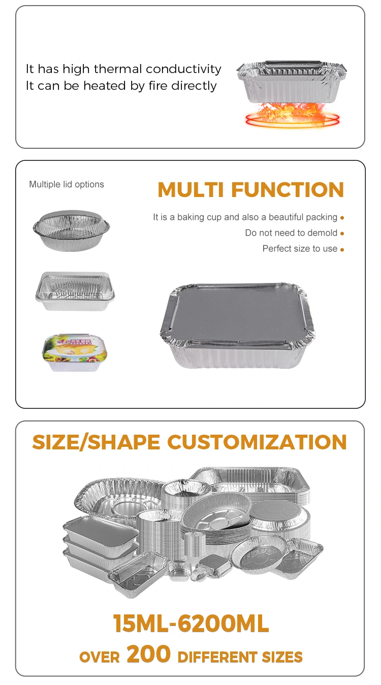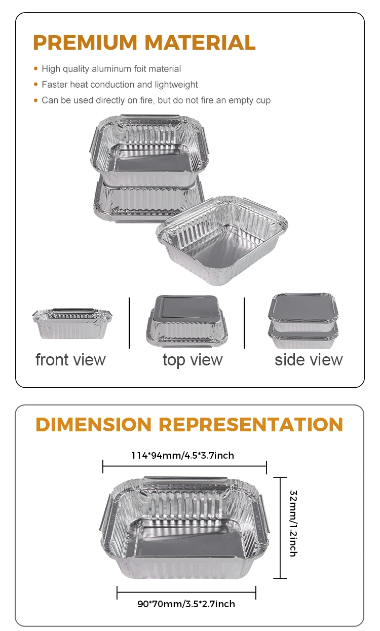 Lisaks on see ühekordselt kasutatav grill -lõunakast hõbedase alumiiniumfooliumi anum äärmiselt ohutu, kuna seda saab tavaliselt kasutada avatud leegi all, ilma et peaksite üldse tuleohtusid muretsema. Samal ajal annavad selle suurepärane temperatuurikindlus ja tihendamine ka toidu ohutu transpordi garantii, võimaldades tarbijatel ja klientidel seda rohkem enesekindlalt kasutada.