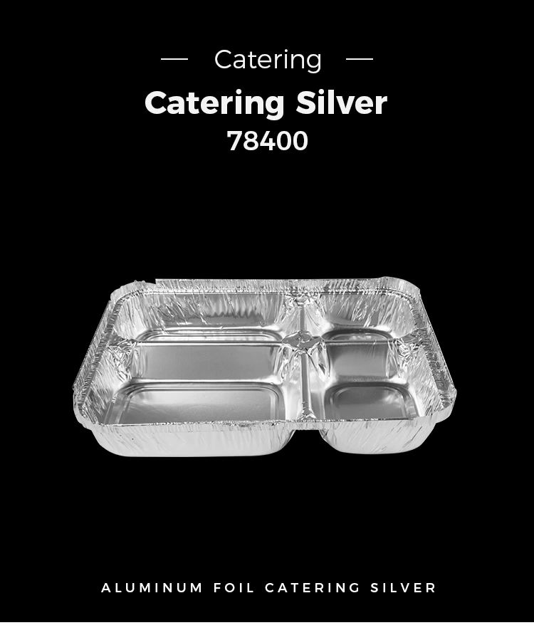 Yunchu alumiiniumfooliumivarustuse tehas tõi turule uue ühekordselt kasutatava mitme sektsiooniga kiirtoidu hõbedase alumiiniumfooliumi konteinerid, mudeli number 78400. Konteiner on nutikalt kujundatud, ülemise läbimõõduga 244 mm (9,6 tolli) ja 195 mm (7,6 tolli) ja madalama diameetriga 217 mm (8,5-ga) (8.5) ja 168 mm) (8,5 mm) ja 168 mm), ja 168 mm). (1,6 tolli). Ligikaudu 1020 ml (36,0 untsi) mahutavusega on see mugav ja praktiline mitmesuguste toitude hoidmiseks neljas sektsioonis.