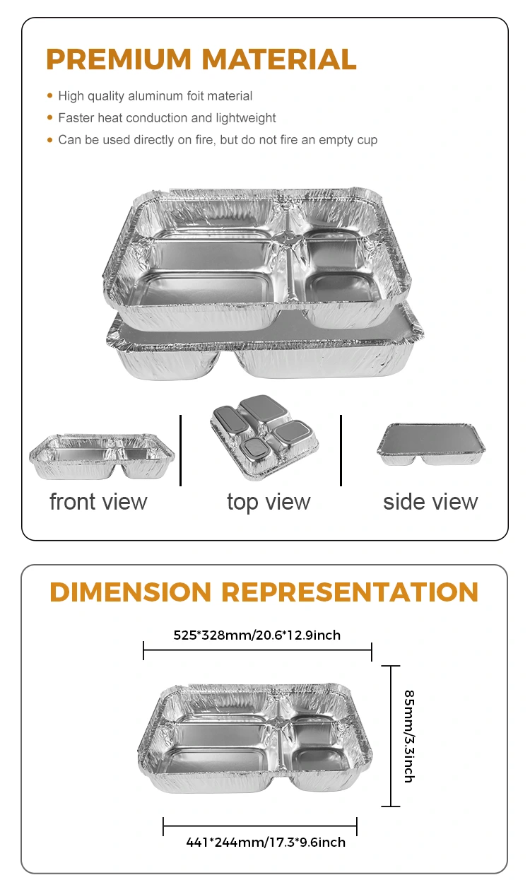 • Ühekordselt kasutatav mitme sektsiooniga kiirtoidu hõbeda alumiiniumfooliumi anumadÜhekordselt kasutatav mitme sektsiooniga kiirtoidu hõbeda alumiiniumfooliumi anumad