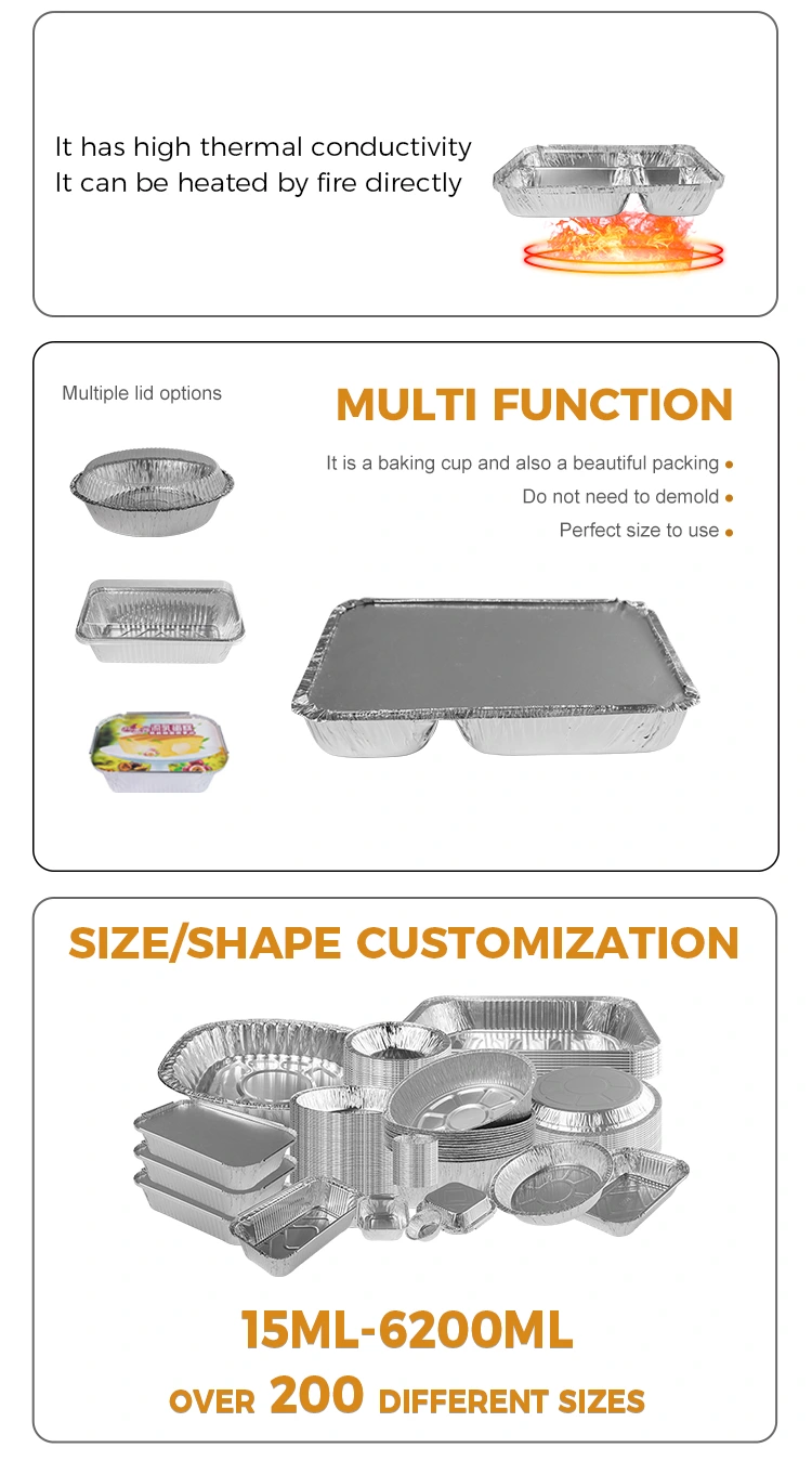 Päringute jaoks sileda seina alumiiniumfooliumi konteinerid, hõbedase alumiiniumfooliumi konteinerid, jätke oma e -posti aadress lahkelt meiega ja võtame teiega ühendust 24 tunni jooksul.
