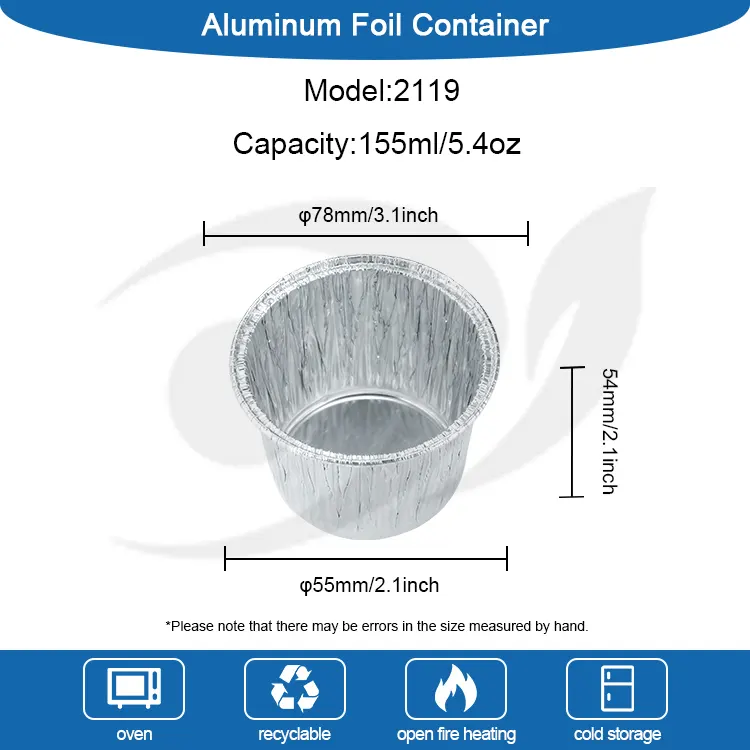 Yunchu alumiiniumfooliumi tootja ühekordselt kasutatav ümmargune koogitopsi hõbedane alumiiniumfooliumist anum on valmistatud toidukvaliteediga kõrge puhtusastmega alumiiniumfooliumist. See on läbinud range kvaliteedikontrolli ning sellel pole lõhna ega kahjulikke lisandeid. Otsene kokkupuude koostisainetega annab rohkem meelerahu, kaitstes iga suutäie magusust ja tervist. Paksendatud alumiiniumfooliumiga protsess loob sitke tassi korpuse, mida ei ole lihtne deformeerida ega murda. Seda saab kasutada erinevate koogitainate, vahu, pudingi ja muude koostisosade jaoks. See talub kõrget temperatuuri kuni 250°C ja madalat temperatuuri kuni -20°C ahjude, külmikute, fritüüride ja muude seadmete puhul. Seda saab hästi kohandada küpsetamiseks, jahutamiseks ja külmutamiseks. Alumiiniumfooliumkarpi pole vaja vahetada ja tüütuid samme pole ka liiga palju. Klassikaline ümar disain, tassi korpus on ümmargune ja sile ning kokkusobiv hõbedane metalliline läige ei vaja täiendavat kaunistust. Seda saab serveerida kohe pärast küpsetamist ja sellel on magustoidupoe tasemel esitlusefekt. Tassi suu on peenelt lokkis, muutes selle katsudes siledaks ega kriimusta käsi. See takistab taigna lekkimist sissevalamisel ja hõlbustab vormi eemaldamist.