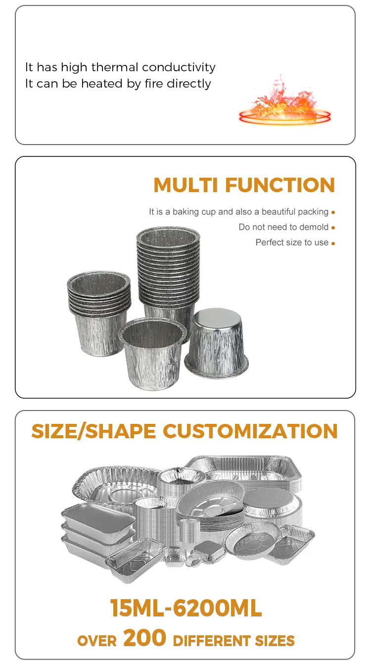 Päringute jaoks sileda seina alumiiniumfooliumi konteinerid, hõbedase alumiiniumfooliumi konteinerid, jätke oma e -posti aadress lahkelt meiega ja võtame teiega ühendust 24 tunni jooksul.