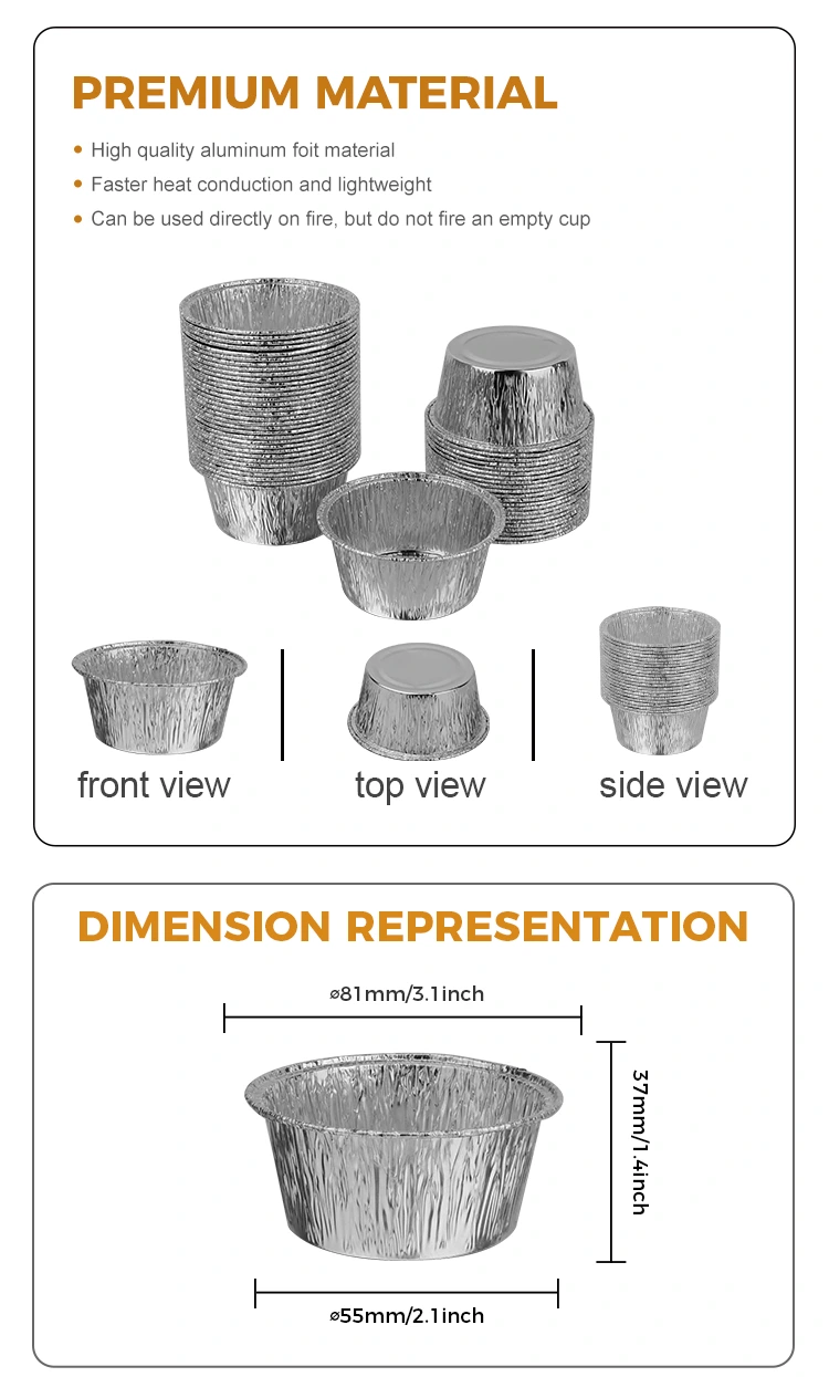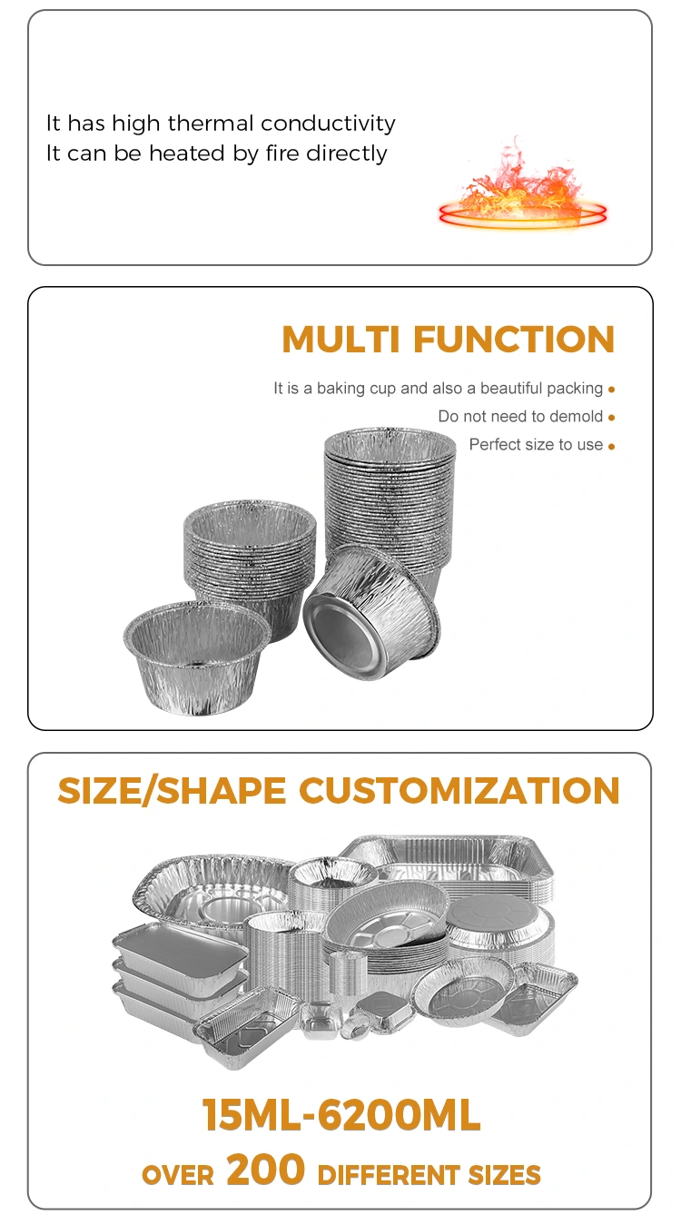 Omadused: Tervislik ja keskkonnasõbralik, ei vaja puhastamist, sobib erinevate majapidamis- ja küpsetiste valmistamiseks. See on parim valik peredele ja pagaritöökodadele. Alumiiniumfooliumi materjal on ohutu ja hügieeniline, puhastamist ei vaja ning seda saab küpsetada lahtisel tulel, mistõttu on mugav valmistada maitsvaid toite.
