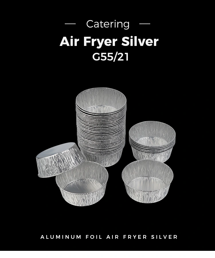 • Ühekordselt kasutatav hõbedane ümmargune õhufritüür Hõbedane alumiiniumfooliumist toidukonteineridÜhekordselt kasutatav hõbedane ümmargune õhufritüür Hõbedane alumiiniumfooliumist toidukonteinerid