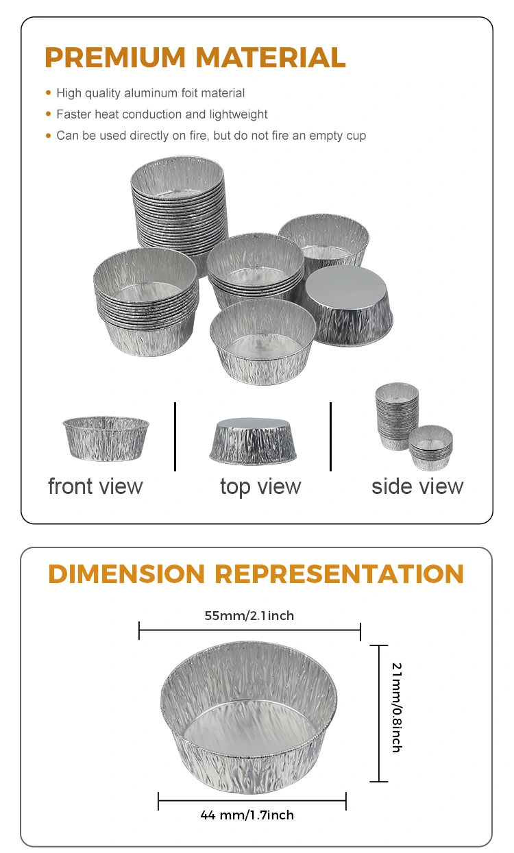 Yunchu alumiiniumfooliumi tarnija ühekordselt kasutatav hõbedane ümmargune õhufritüüri hõbedane alumiiniumfooliumist anum on valmistatud toidukvaliteediga paksendatud alumiiniumfooliumist. See on ohutu, lõhnatu ja kahjulike sademeteta. See võib otse kokku puutuda igasuguste kastmismaterjalidega. Seda väikest alumiiniumfooliumist anumat saab ruumi säästmiseks virnastada, mitte deformeeruda ja see ei leki. Hõbedasel alumiiniumfooliumil on ühtlane tekstuur ja suurepärane soojusjuhtivus. Seda saab kasutada restoranides, kohvikutes, perekondlikel koosviibimistel jne. Seda kasutatakse suupistetega õhufritüürides jne. Isegi kui see sisaldab paksu kastmeid ja õliseid dipikastmeid, ei leki see. See hoiab lauaplaadi ja köögiriistad puhtad ja korras. Fooliumi esitlus on lihtne ja kaunis erinevates stseenides. Hõbedast välimust saab sobitada erinevate õhtusöögitaldrikutega.