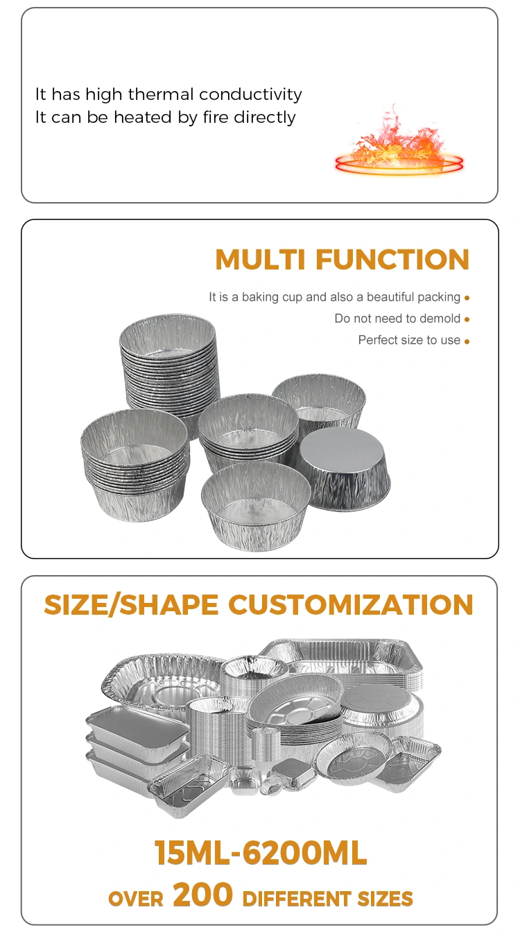 Päringute jaoks sileda seina alumiiniumfooliumi konteinerid, hõbedase alumiiniumfooliumi konteinerid, jätke oma e -posti aadress lahkelt meiega ja võtame teiega ühendust 24 tunni jooksul.