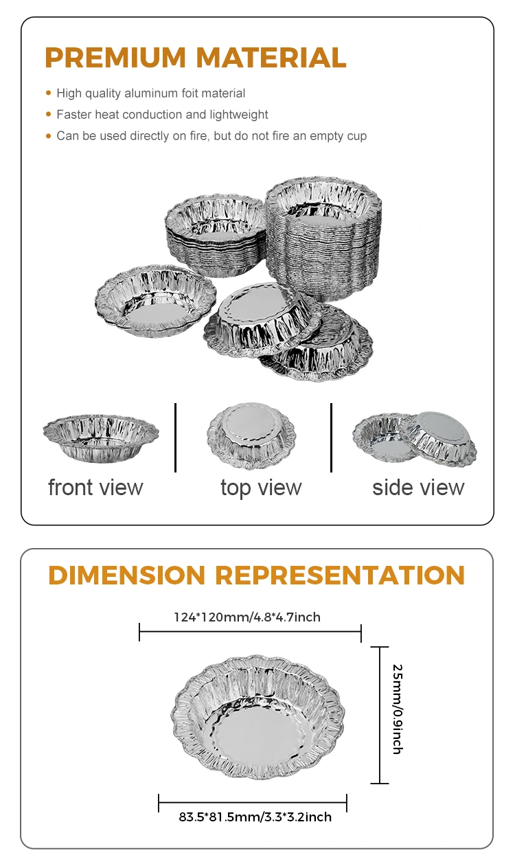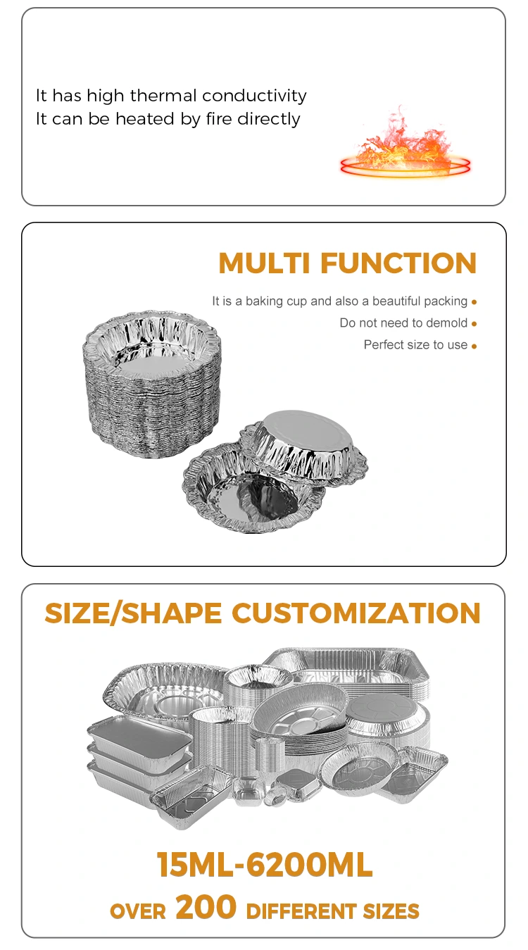 Yunchu alumiiniumfooliumi tarnija pitsi ümmargune kook hõbedane alumiiniumfooliumi anumad, väga mugav küpsetuskookide, munakookide ja õhu praadimise jaoks, paljude funktsioonidega, paksud ja vastupidavad küpsetamiseks. Mida te kõige rohkem hindate küpsetusvormide valimisel? Kas materjal on usaldusväärne? Kas seda on lihtne lammutada? Kas see on kasutajasõbralik? See pitsi ümmargune küpsetuskook hõbedane alumiiniumfooliumi anum vastab teie vajadustele küpsetusvormide järele! Üheosa vormitud, paksendatud ja küpsetamiseks vastupidav, mis on valmistatud 8011 toidukontaktist alumiiniumfooliumi materjalist, ohutu toidukontaktide jaoks, mitte hõlpsasti deformeeruda või lekkida, ühtlane soojusjuhtivus, hõlpsasti põletav või üleküpsetatud, maitsv ja ohutu valmistatavaks, õli- ja plekikindlaks, hõlpsasti demoteeritav, pitsiks hõlpsaks käepidemeks, mis on lihtsaks käsitsemiseks, mis on lihtne, et see on lihtsaks.