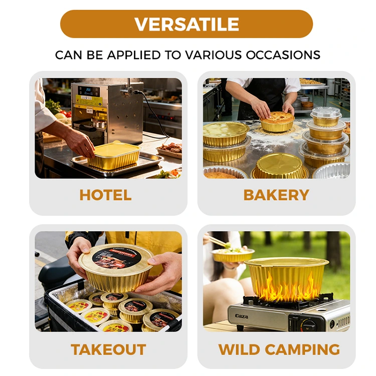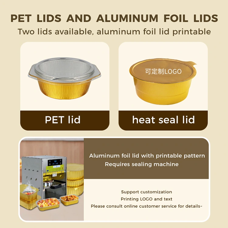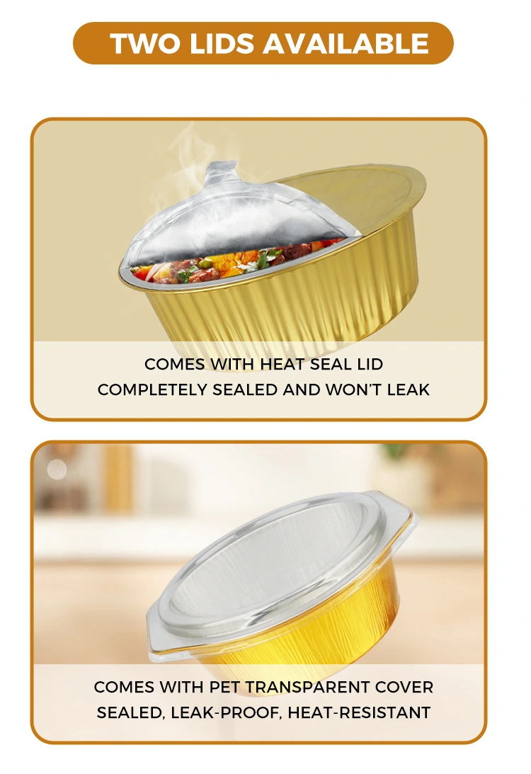 Yunchu on professionaalne alumiiniumfooliumist konteinerite tootja ja tarnija Hiinas. Meie kuldsete alumiiniumfooliumist mahutitega käsitsi kuumsulgemismasinal on välimuse ja tugevuse kaks eelist. Sellest on saanud eelistatud kombinatsioon kaasatoitlustamise, rühmatoidu kohaletoimetamise ja valmistoidutööstuses. See ei saa mitte ainult tõsta esile brändi kvaliteeti, vaid ka lahendada pakendamise valupunkti, vähendada kulusid ja suurendada kaupmeeste tõhusust ning pakkuda tarbijatele rahustavat kogemust.