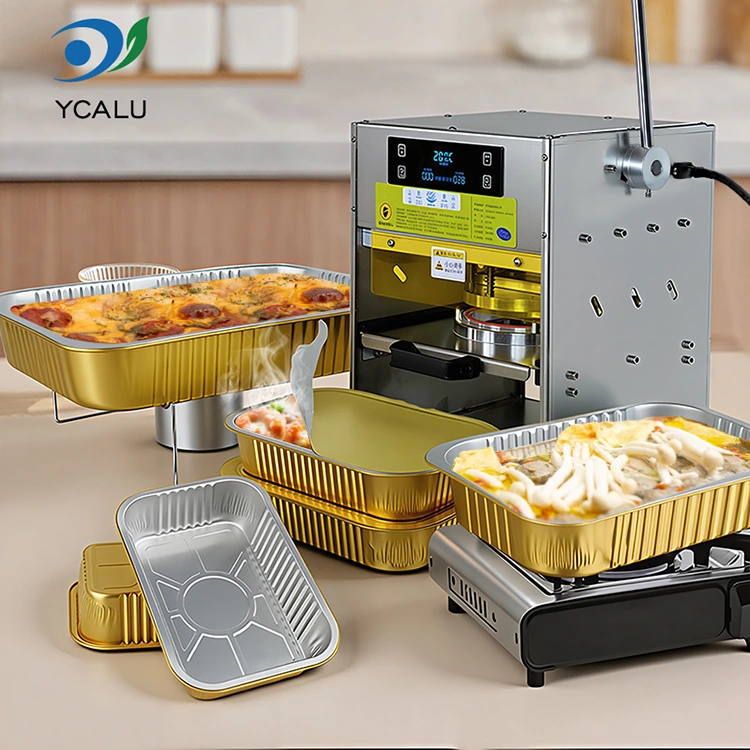 • Käsitsi kuumsulgemismasin kuldse alumiiniumfooliumiga konteineritegaKäsitsi kuumsulgemismasin kuldse alumiiniumfooliumiga konteineritega