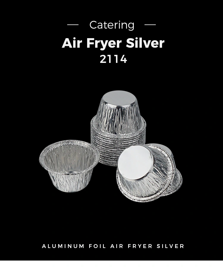 • Ühekordne väike ümmargune koogi õhufritter Hõbedane alumiiniumfooliumist toidukonteineridÜhekordne väike ümmargune koogi õhufritter Hõbedane alumiiniumfooliumist toidukonteinerid