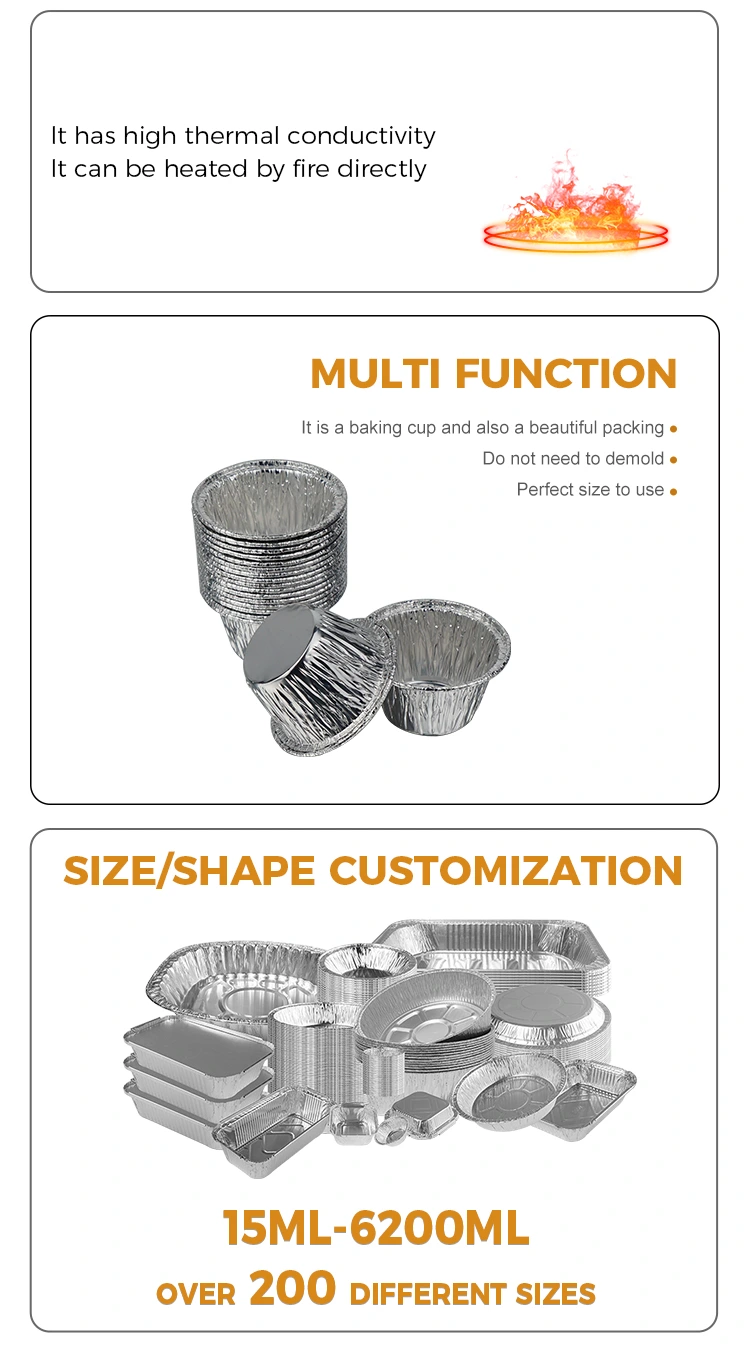 Päringute jaoks sileda seina alumiiniumfooliumi konteinerid, hõbedase alumiiniumfooliumi konteinerid, jätke oma e -posti aadress lahkelt meiega ja võtame teiega ühendust 24 tunni jooksul.