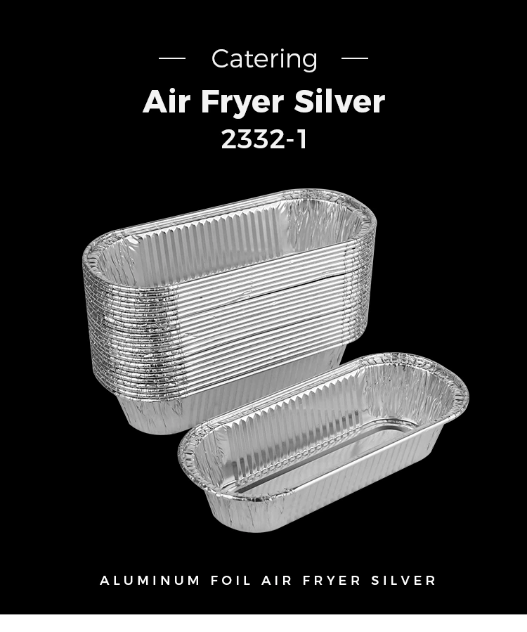 • Ovaalne õhu praepann küpsetab hõbedase alumiiniumfooliumi anumaidOvaalne õhu praepann küpsetab hõbedase alumiiniumfooliumi anumaid