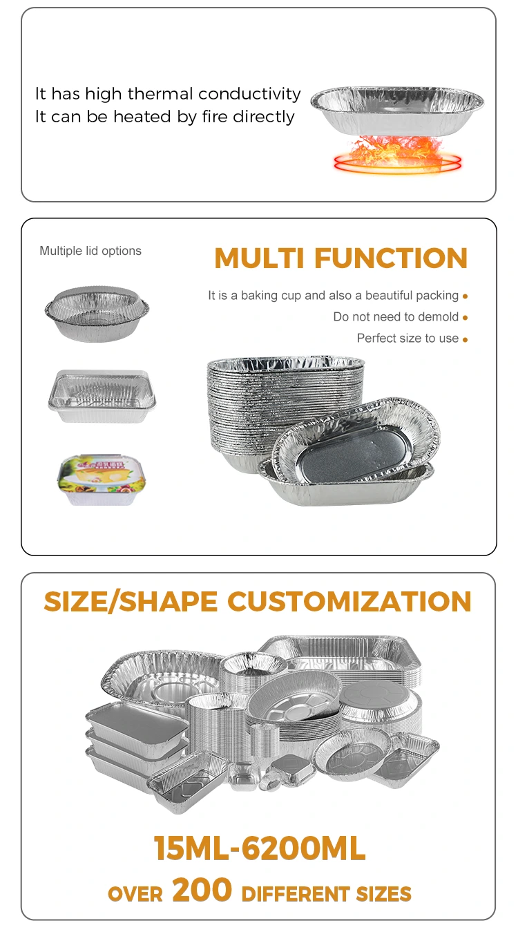 Päringute jaoks sileda seina alumiiniumfooliumi konteinerid, hõbedase alumiiniumfooliumi konteinerid, jätke oma e -posti aadress lahkelt meiega ja võtame teiega ühendust 24 tunni jooksul.