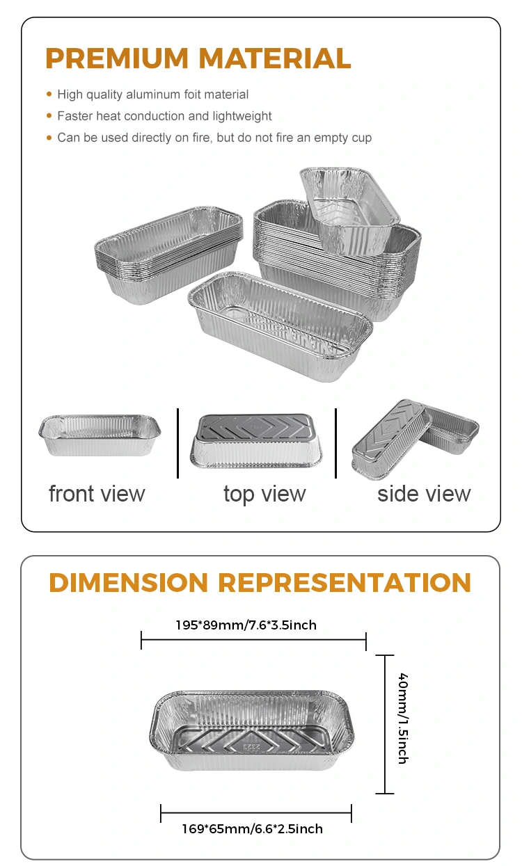 • Ristkülikukujulised leivaküpsetamise hõbedase alumiiniumfooliumi anumadRistkülikukujulised leivaküpsetamise hõbedase alumiiniumfooliumi anumad