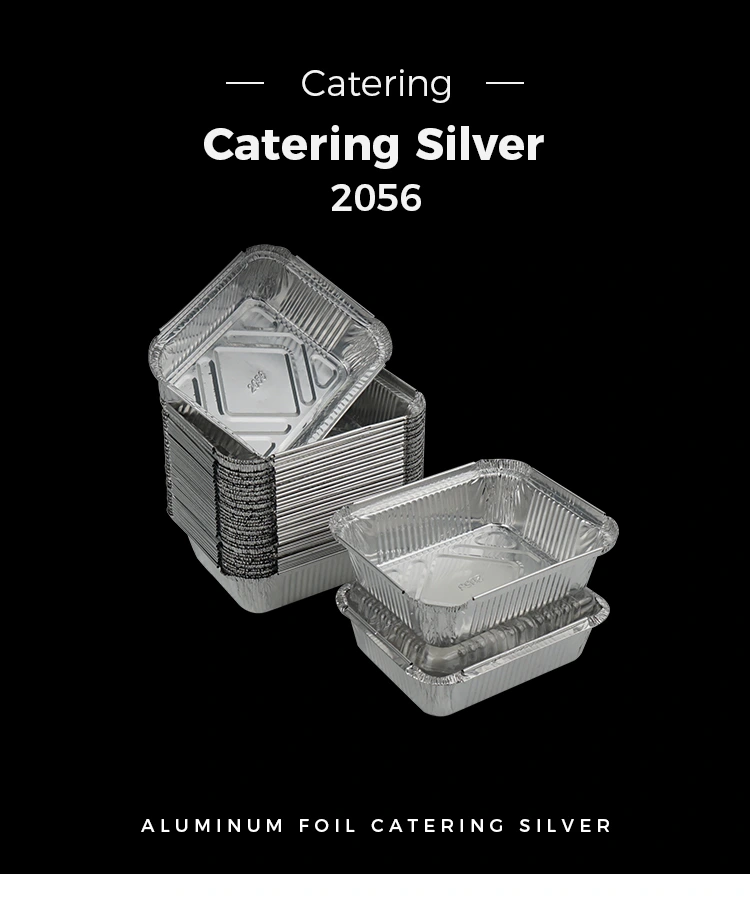 Made in China Model 2056 Ristkülikukujuline Gratin on pakendatud hõbedase alumiiniumfooliumi konteinerid väga tagasihoidlik suurus, ülemise läbimõõduga 170*136 mm (6,9*5,3 tolli), aluse läbimõõt 131*101 mm (5,1*3,9 tolli), kõrgusega ainult 47 mm (1,8 -tollist). Seda suurust pole mitte ainult lihtne kanda, vaid vastab ka mitmesugustele erinevatele kasutusvajadustele.