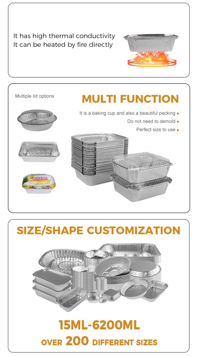 Päringute jaoks sileda seina alumiiniumfooliumi konteinerid, hõbedase alumiiniumfooliumi konteinerid, jätke oma e -posti aadress lahkelt meiega ja võtame teiega ühendust 24 tunni jooksul.