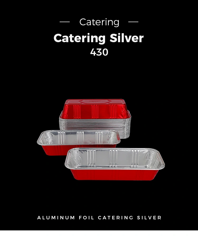 • Ristkülikukujulised punased pagariäri toitlustus Hõbedased alumiiniumfooliumist konteineridRistkülikukujulised punased pagariäri toitlustus Hõbedased alumiiniumfooliumist konteinerid