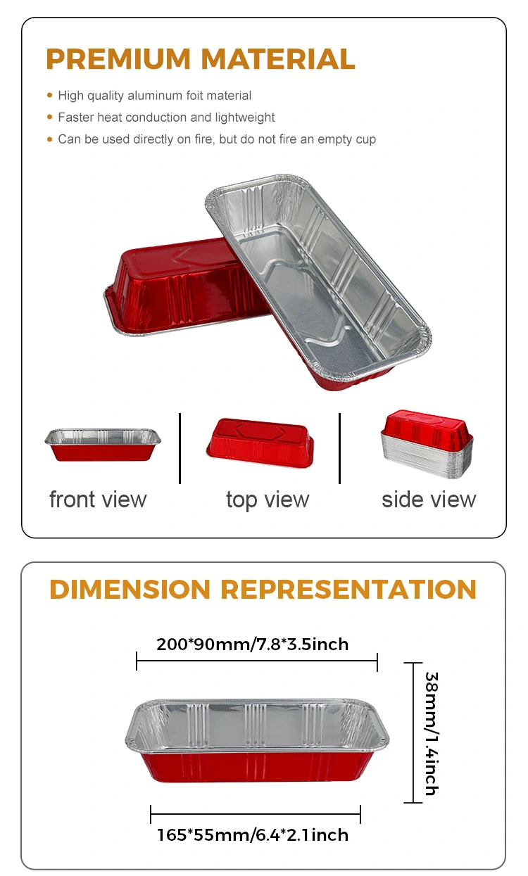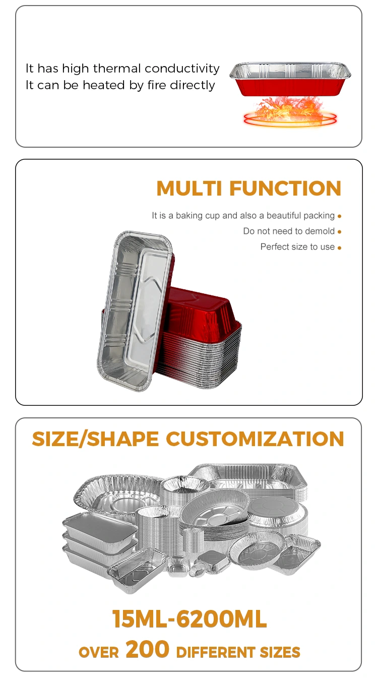 Yunchu alumiiniumfoolium pakub kvaliteetseid ristkülikukujulisi punaseid pagaritöökodadele mõeldud hõbedast alumiiniumfooliumist anumaid, mis on disainitud vastupidavaks ja kuumakindlaks, juhivad ühtlaselt soojust, et vältida söestumine, ja millel on tugev tihendus, et hoida värskena.