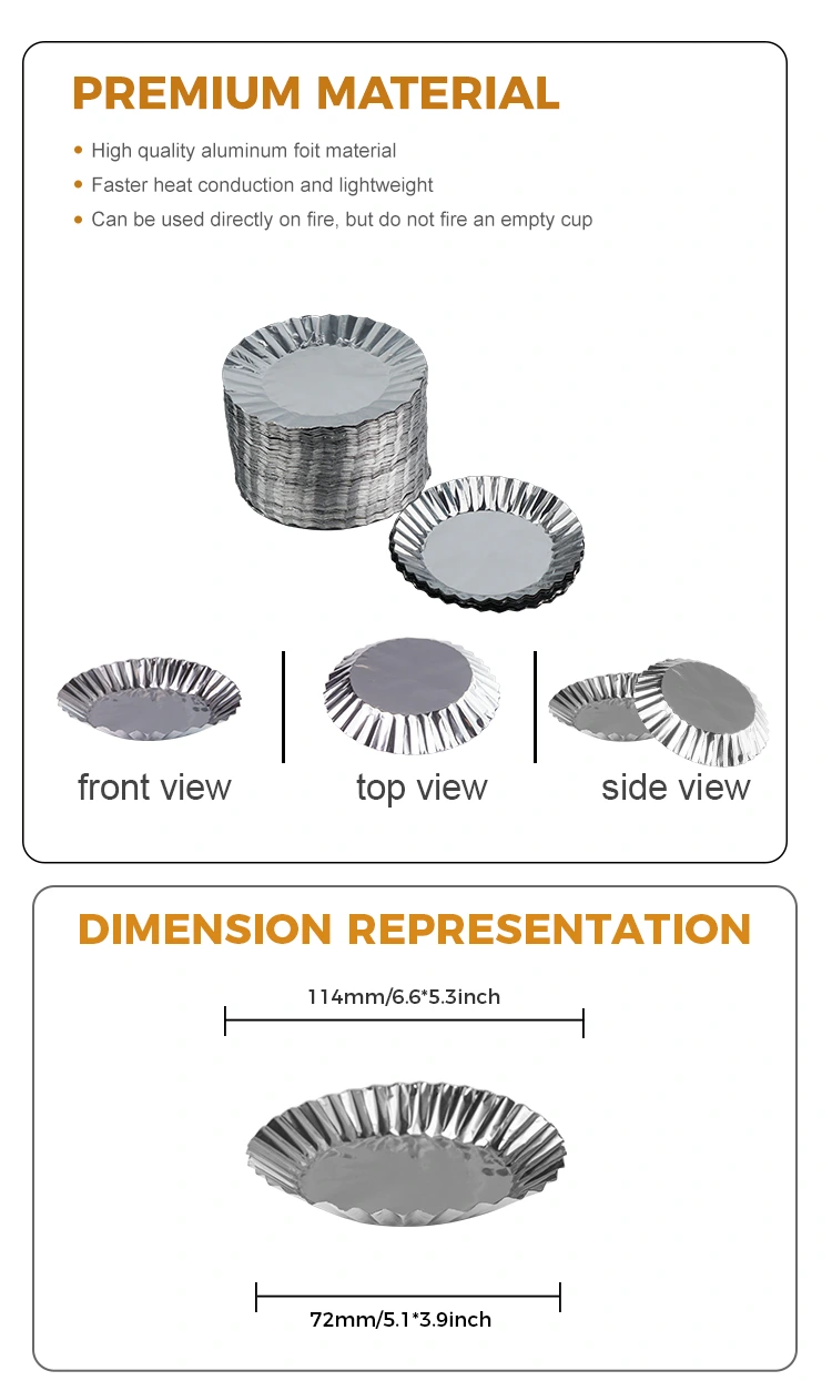 Meie tooted on hankinud alumiiniumist toidupakendite materjalide riikliku ohutustunnistuse ja läbinud Saksamaa ERP sertifikaadi, EL SGS -i sertifikaadi ja ISO9001 kvaliteedijuhtimissüsteemi sertifikaadi. Meie toodete ohutuse ja mittetoksilisuse tagamiseks kasutame tervislikke ja keskkonnasõbralikke toidukvaliteedilisi materjale. Need materjalid pole mitte ainult taaskasutatavad, vaid ka keskkonnasõbralikud, kajastades täielikult meie rangeid toiduohutuse nõudeid ja pühendumust kvaliteetsete toodete pakkumisele. Kvaliteetsed, praktilised ja kaunilt kujundatud küpsetuskoogi ümmargused vormivilofooliumipadjad sobivad nii omatehtud söögikordadeks perekeskkonnas kui ka teenusteks kommertskorralduses.