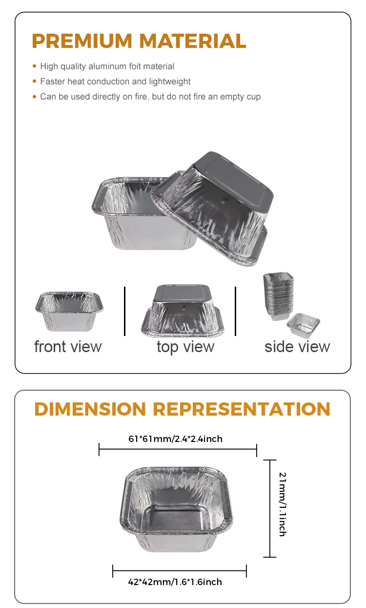 Yunchu alumiiniumfooliumitarnija ruudukujuline õhufüür hõbedase alumiiniumfooliummahutid toitlustuses, koduõhu praepanni tootmises, kaasavõtmise tarnimisega, puhvetikastmete, bankettide ja muude kohtadega, kuid sobivad ka aurutatud munade, šokolaadi, küpsiste, väikeste kookide, väikeste kookide, kastmete ja muude vahemaade jaoks, kas see on koos toiduga, kas kastid, kas kastid, kas kastid, kas kastid, kas kastid, kas kastid, kas kastid, kas kastid, kas kastid on koos, olgu need siis väikesed. Alumiiniumfooliumi tasse saab roogadele punkte lisades ära panna, kuid neid saab ka koormata pesta ja kasutada.