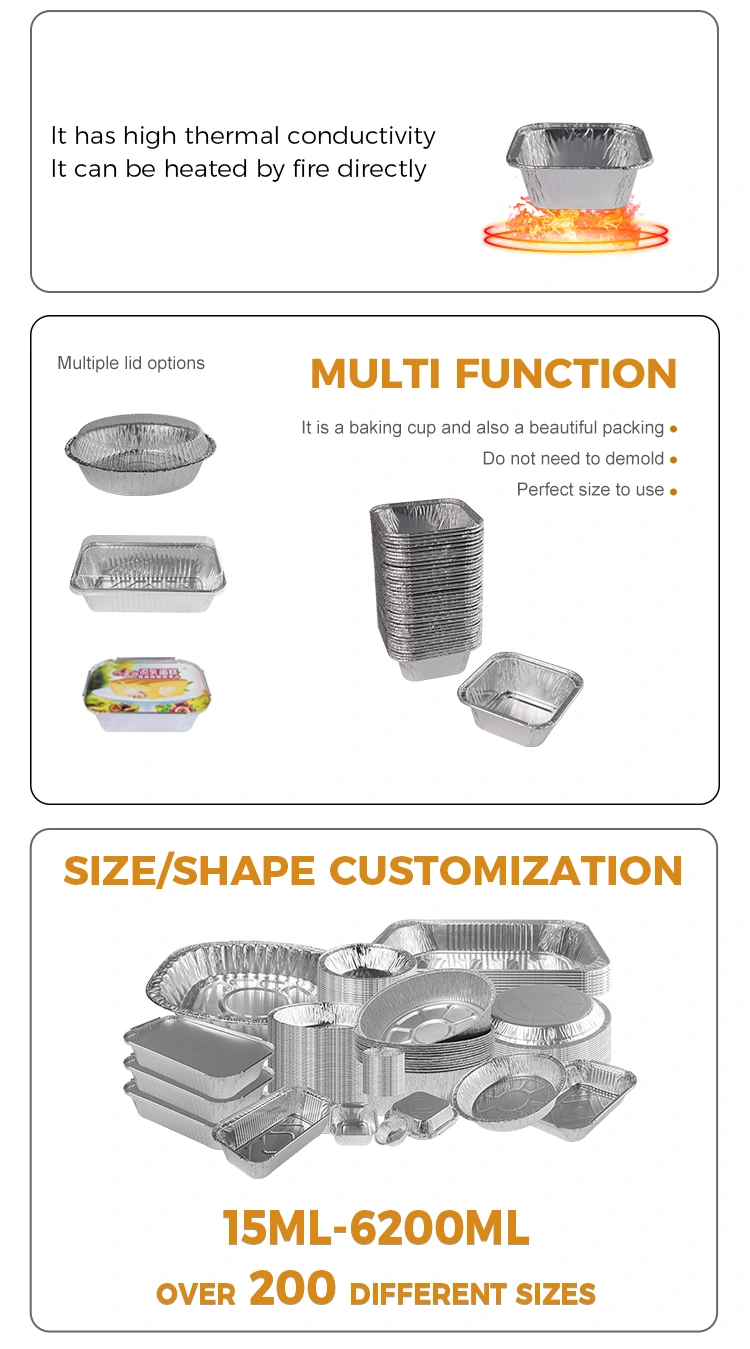 Päringute jaoks sileda seina alumiiniumfooliumi konteinerid, hõbedase alumiiniumfooliumi konteinerid, jätke oma e -posti aadress lahkelt meiega ja võtame teiega ühendust 24 tunni jooksul.