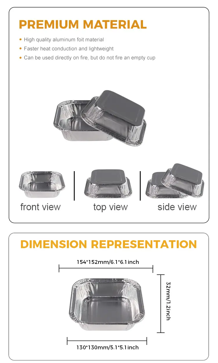 Yunchu alumiiniumfooliumi tarnija mudel 3217 ruudukujuline kook õhu praepann hõbedane alumiiniumfooliumkonteiner, see stiil on kodu küpsetamine, õhufüüsor, toitlustamine, väljavõtmine pakend, kokkuvõttega tehase tehase hulgimüügiostutooted, millel on täielik lokkis disain, käed ei kraapiks, kui kasutate, et PET-i täielikku kaanet pakkuda, kui te osutate, kui soovite pakkuda logo siidise disainilahendust, kuid MOQ-i. Fooliumi konteiner, valida on mitmesuguseid spetsifikatsioone ja mudeleid, võite uurida äritöötajatega.