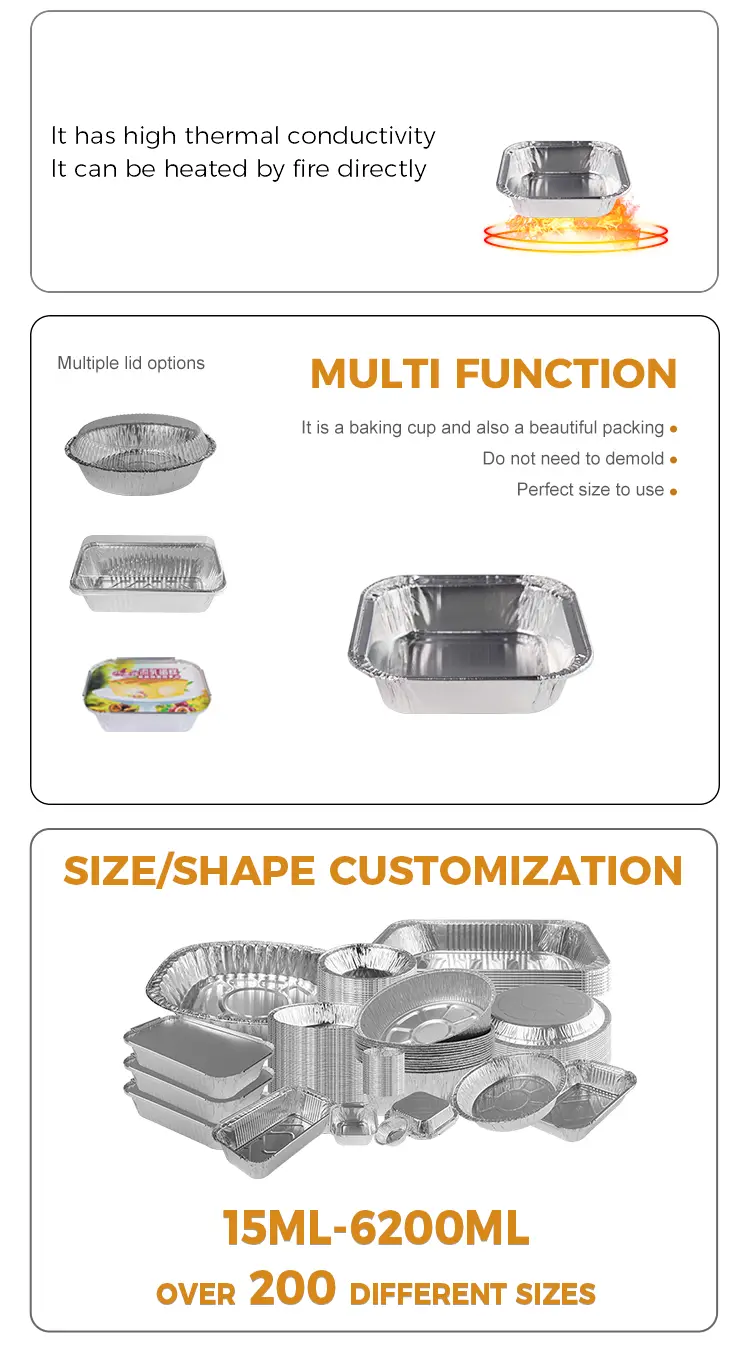Päringute jaoks sileda seina alumiiniumfooliumi konteinerid, hõbedase alumiiniumfooliumi konteinerid, jätke oma e -posti aadress lahkelt meiega ja võtame teiega ühendust 24 tunni jooksul.